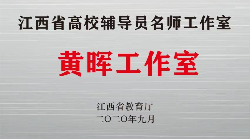 江西省高校辅导员名师工作室——黄晖工作室2020年9月获批成立,由江西省教育厅统一命名并挂牌,由全国高校辅导员年度人物、江西省高校最美辅导员、江西省高校辅导员年度人物、赣州市五一劳动奖章获得者黄晖领衔。